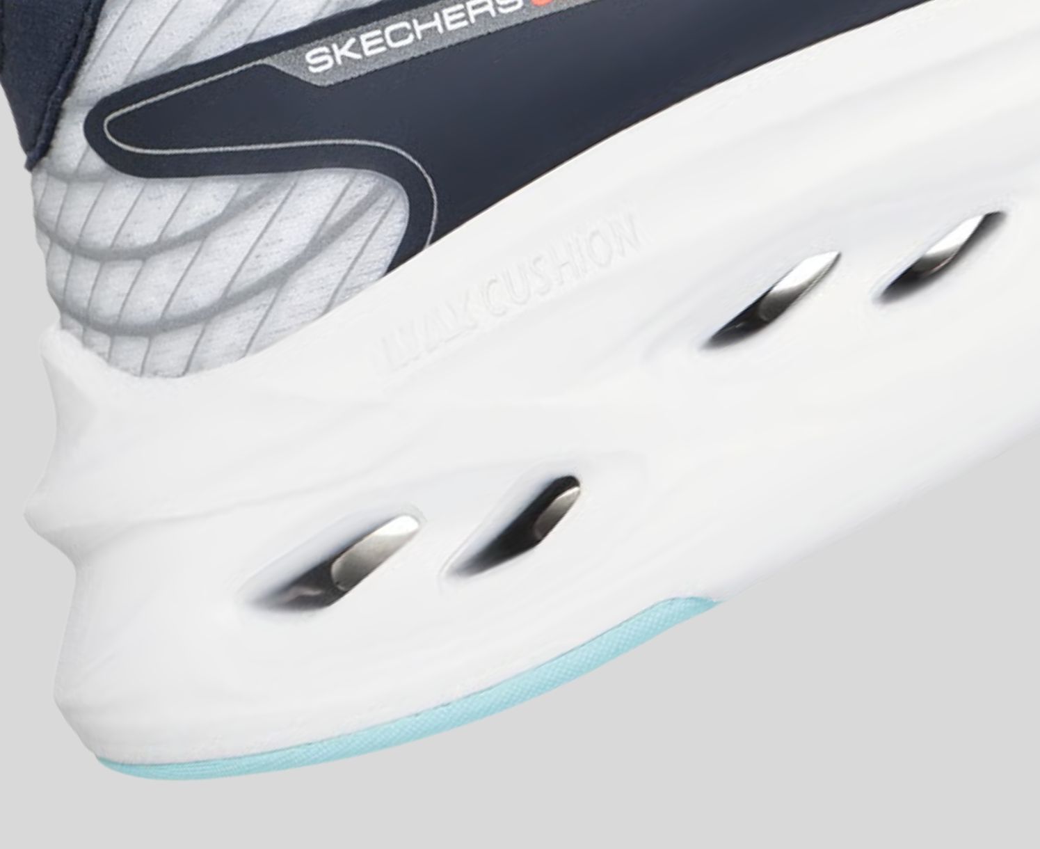 The Skechers Glide-Step® geometric midsole is designed to provide natural momentum with every step, offering a pillow-like soft landing and explosive takeoff.