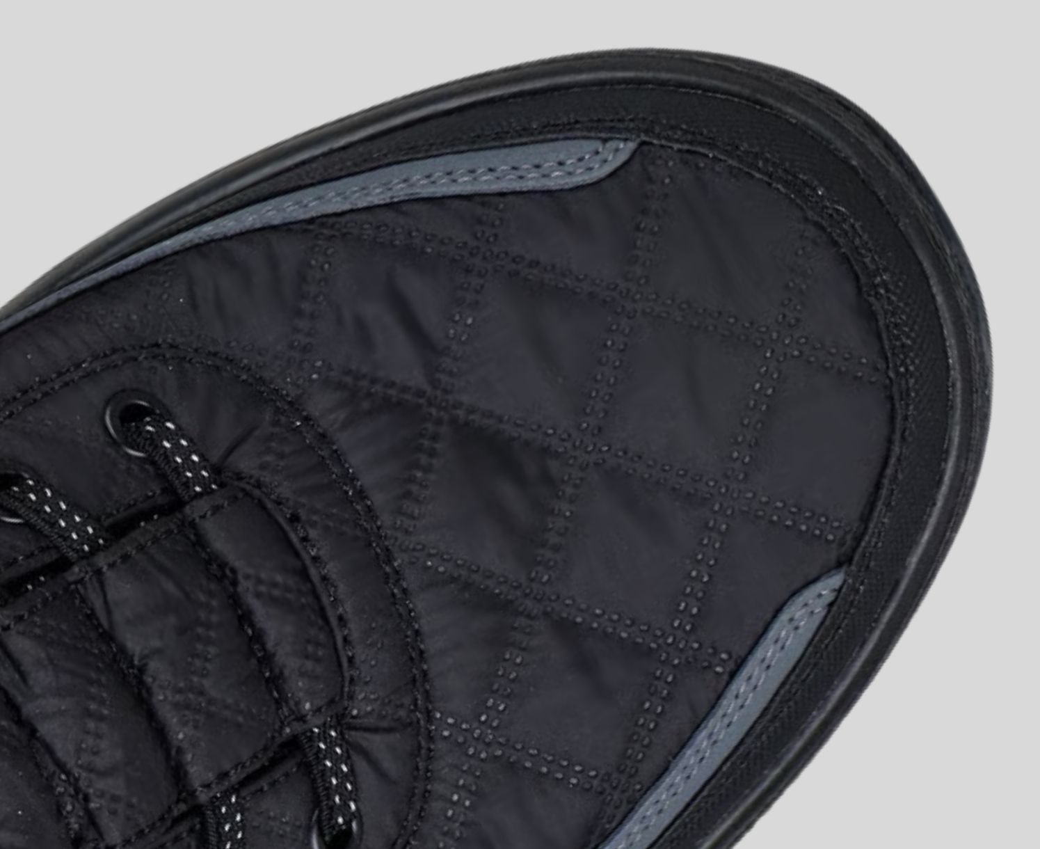 - Modèle à lacets extensibles noués avec empeigne en tissu matelassé, en matériau synthétique et en cuir