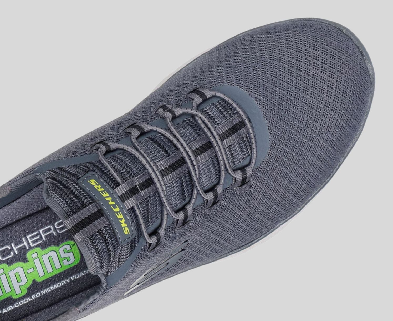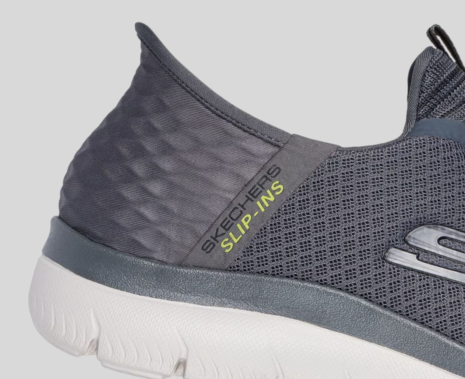 HANDS FREE SLIP-INS™ Optez pour un confort polyvalent et un style classique avec la chaussure Skechers Hands Free Slip-ins® : Summits - High Range. Dotée de notre coussinet de talon Heel Pillow™, cette chaussure végétalienne à lacets extensibles fixes comprend un panneau de talon moulé unique Skechers Slip-ins®, une empeigne en maille et une semelle intérieure coussinée Skechers Air-Cooled Memory Foam™.