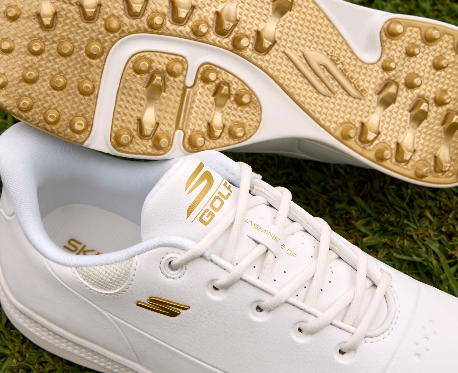 Performez avec style grâce à la chaussure imperméable Skechers : GO GOLF® Jasmine 2. Cette chaussure imperméable à lacets comprend une empeigne en matériau synthétique avec une semelle intérieure Move Foam™ confortable, un coussinet écologique ECO FLIGHT™ plus une semelle extérieure GRIPFLEX™ sans crampons et des crampons Softspikes® remplaçables pour une adhérence maximale.